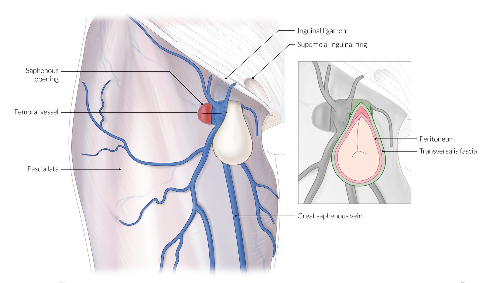 See āInguinal herniasā and āFemoral herniasā for more detail on these hernia types.