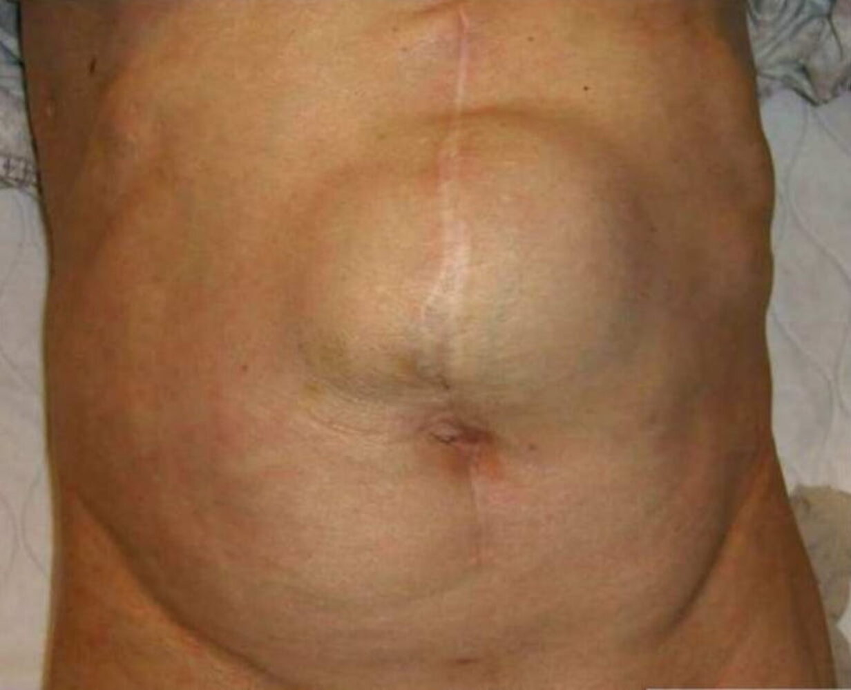 - Incisional hernia: protrusion of intraabdominal contents through an abdominal wall defect due to previous surgery