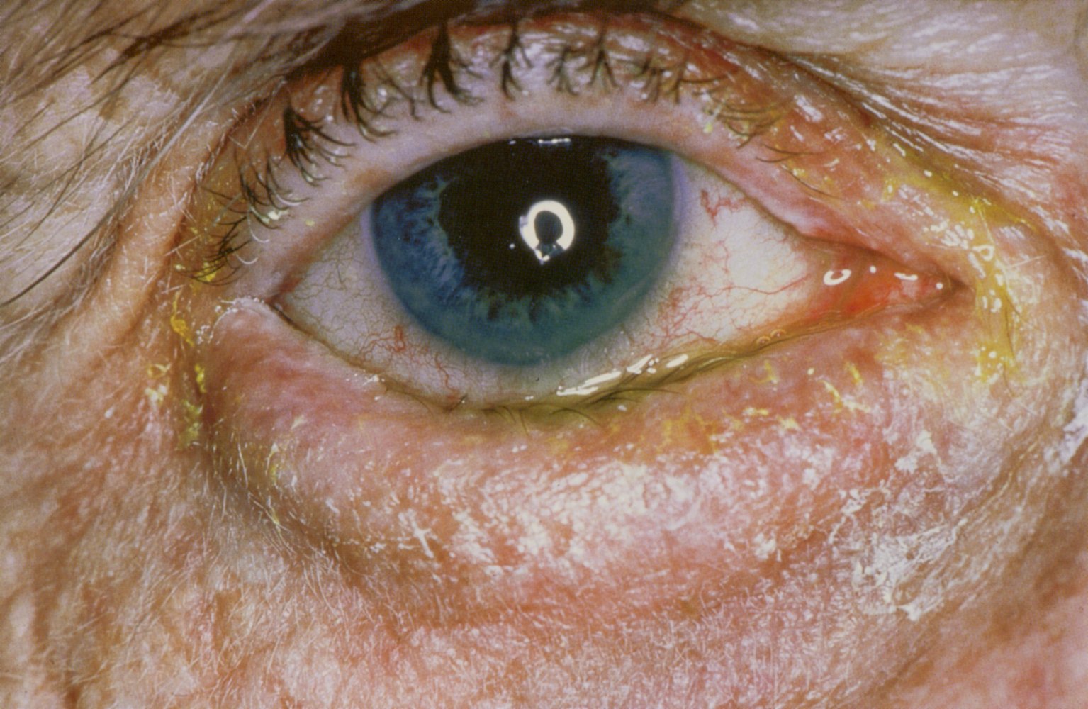 - Conjunctival and corneal lesions (e.g., corneal thinning, scarring, ulcers)
