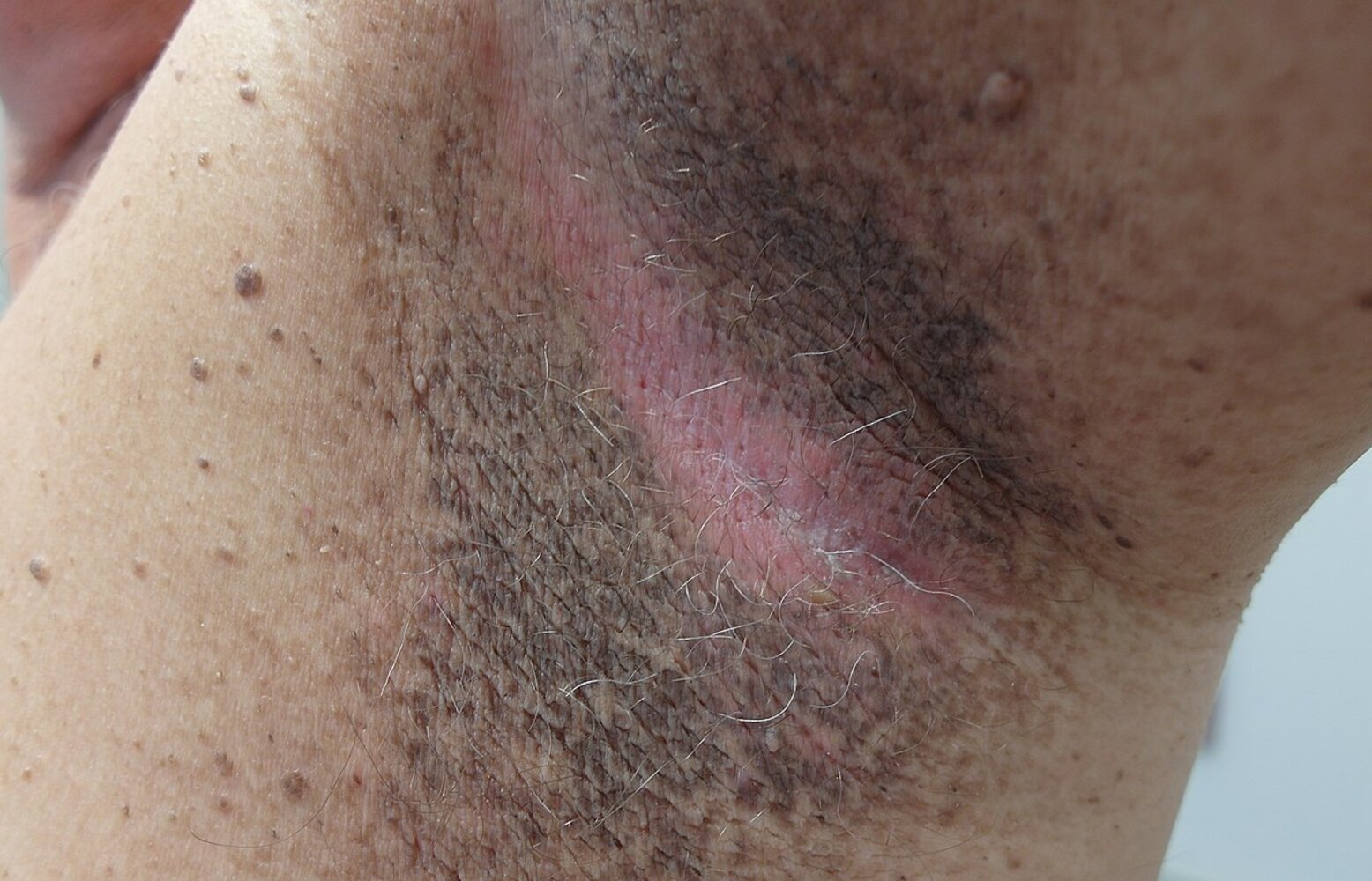 Acanthosis nigricans is a dermatological condition of hyperkeratosis characterized by velvety, hyperpigmented plaques that are most frequently located in intertriginous areas such as the axillae or groin. It is often caused by an underlying metabolic or endocrine condition, e.g., diabetes or obesity. Acanthosis nigricans may also be genetic or associated with the use of certain medications (e.g., corticosteroids, oral contraceptives). Benign acanthosis nigricans must be distinguished from malignant acanthosis nigricans, which is the cutaneous manifestation of an underlying malignancy. Acanthosis nigricans is a clinical diagnosis, but testing is indicated to identify the underlying cause. Treatment is focused on the underlying cause and may include cosmetic treatment if requested by the patient.
