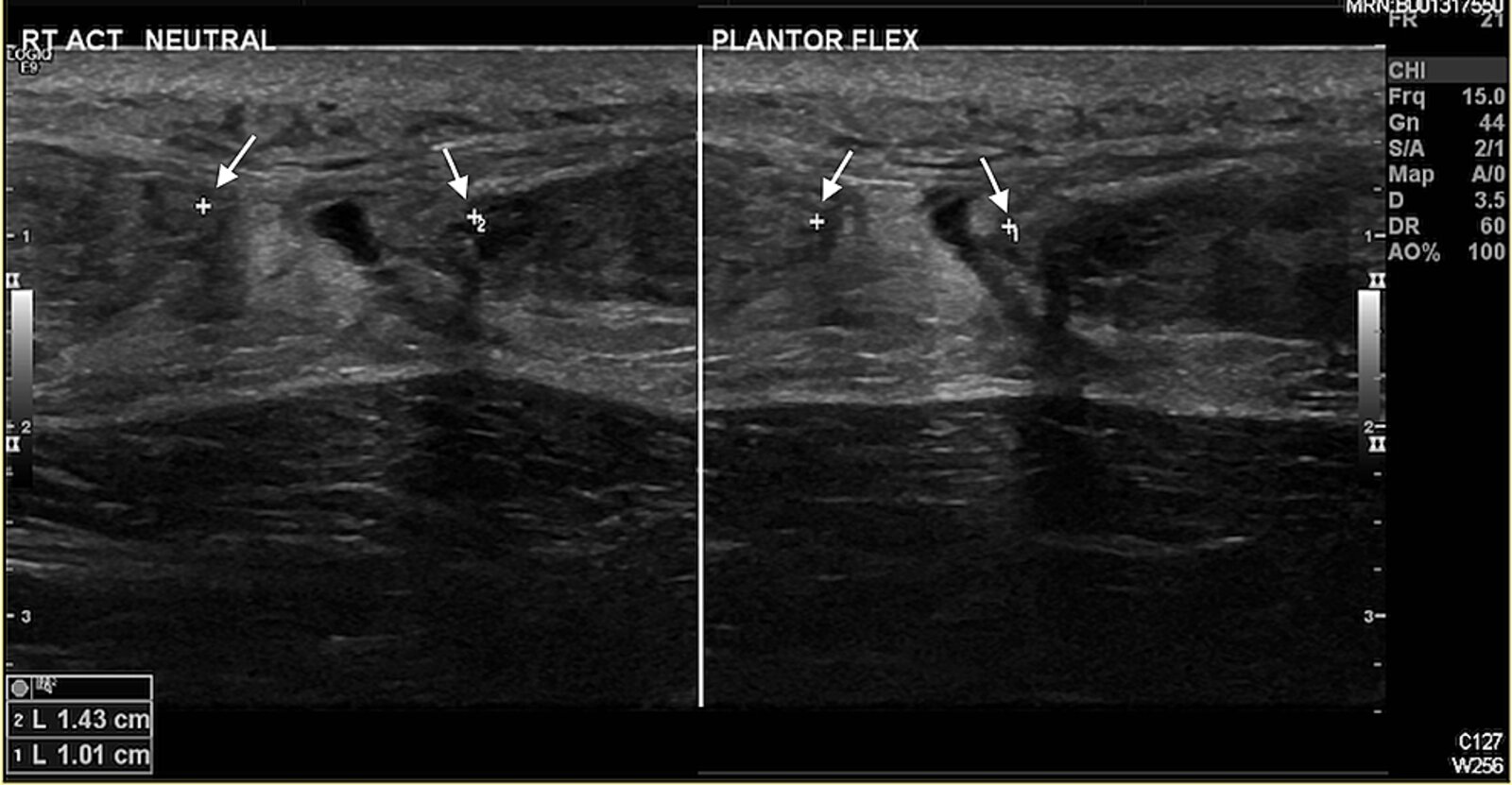 Normal plantar flexion does not rule out a suspected Achilles tendon tear. Always compare the symptomatic side with the uninjured side. [2]