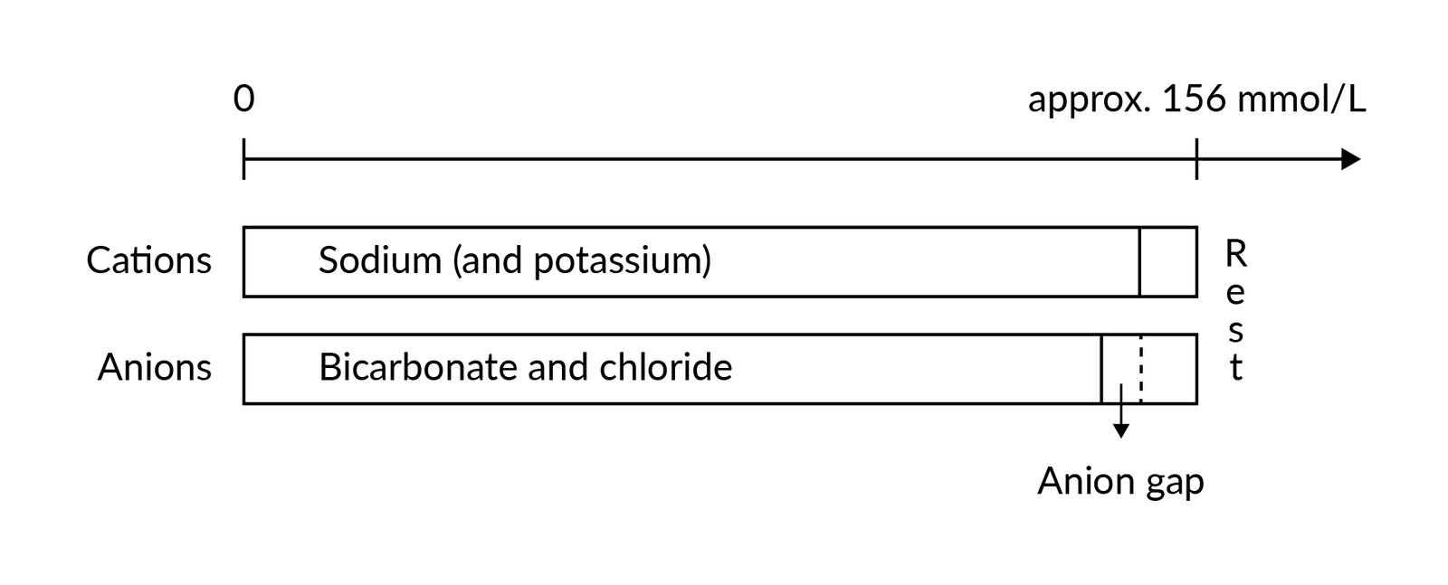 - Anion gap: the difference between the concentration of measured cations and measured anions