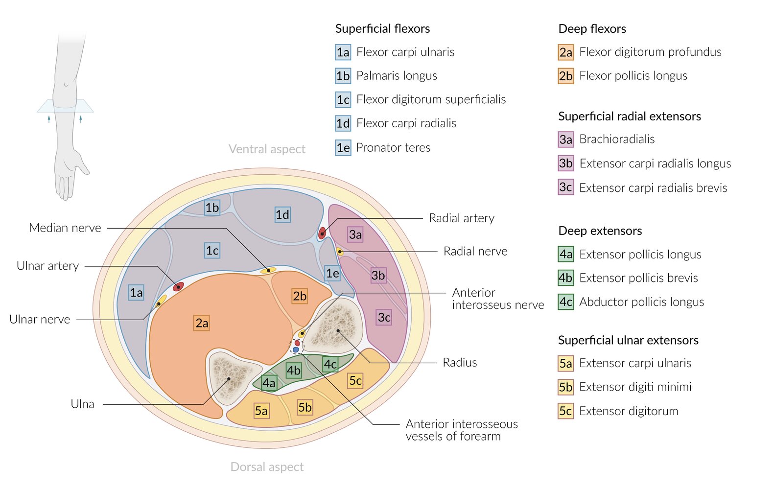 - Pathophysiology: blood vessel (e.g., brachial artery) or nerve (e.g., radial nerve) damage ; (e.g., due to forearm fracture, repositioning of the bones, restrictive cast) β sustained ischemia and necrosis β fibrosis and contracture of the forearm flexor muscles βatrophy of the flexors of the hand and fingers