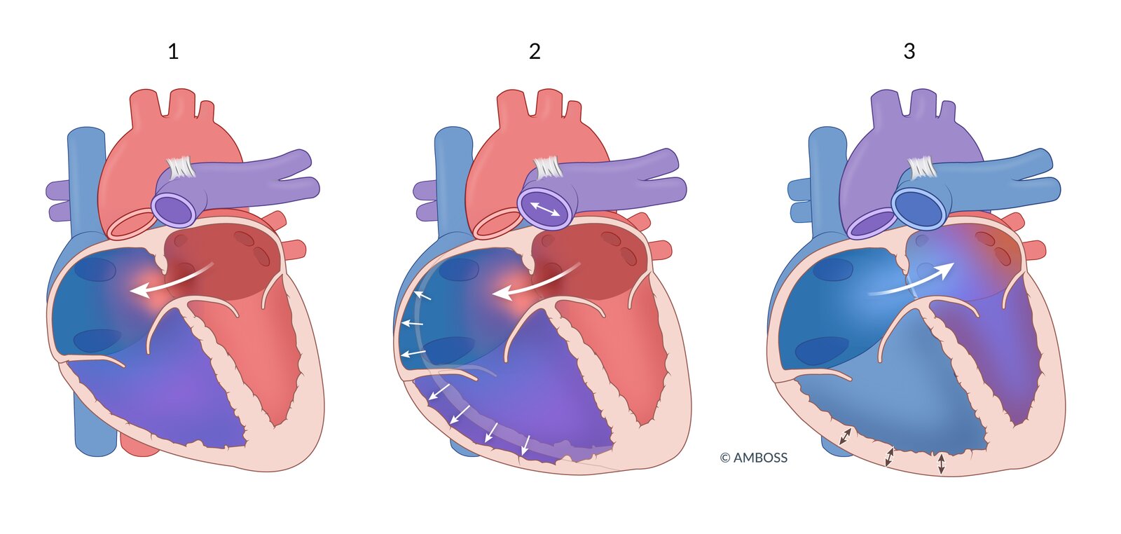 - Right-to-left shunt: blood flows from the right to the left heart via a shunt → deoxygenated blood entering the systemic circulation → cyanosis
