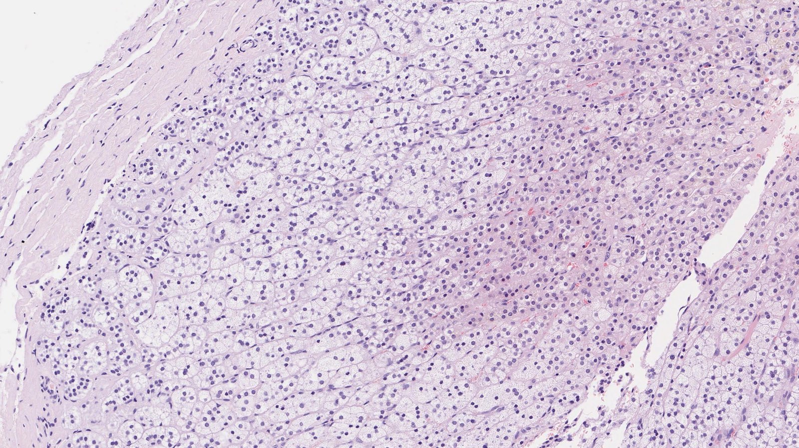 - Cells are arranged in oval clusters surrounded by connective tissue from the fibrous capsule.