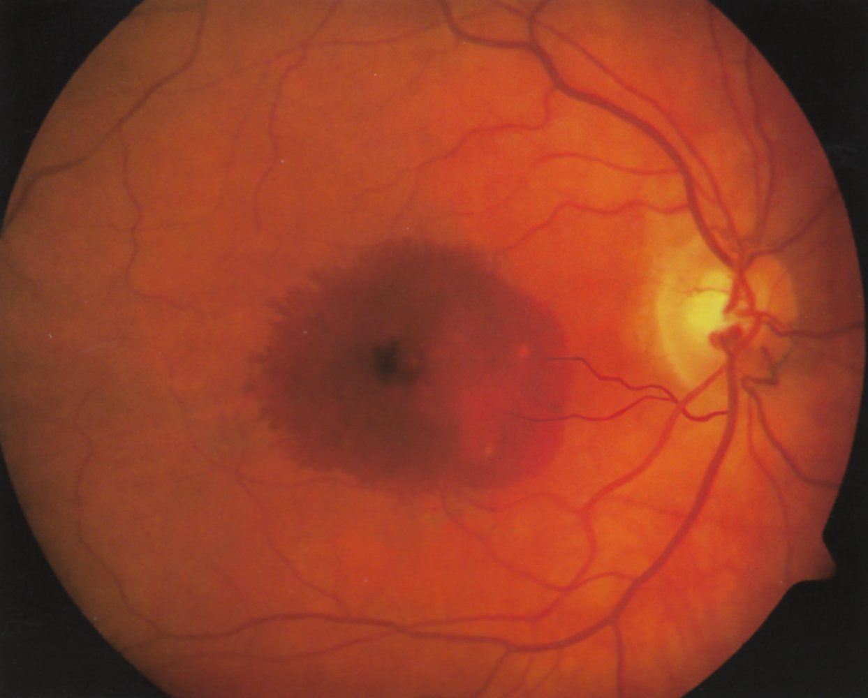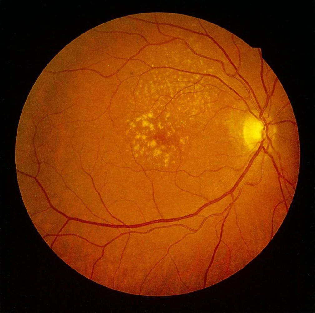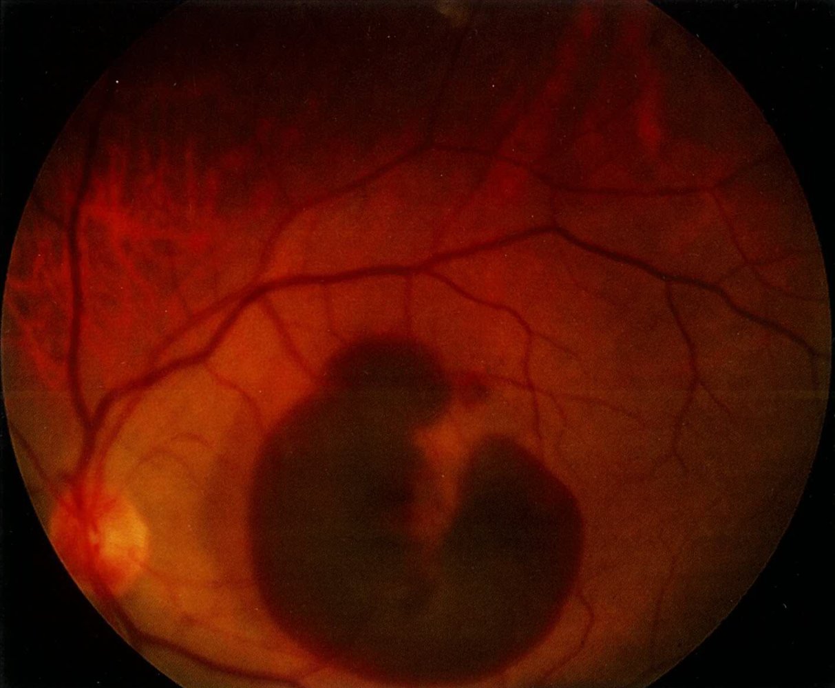 - Subretinal and intraretinal hemorrhage and/or exudate