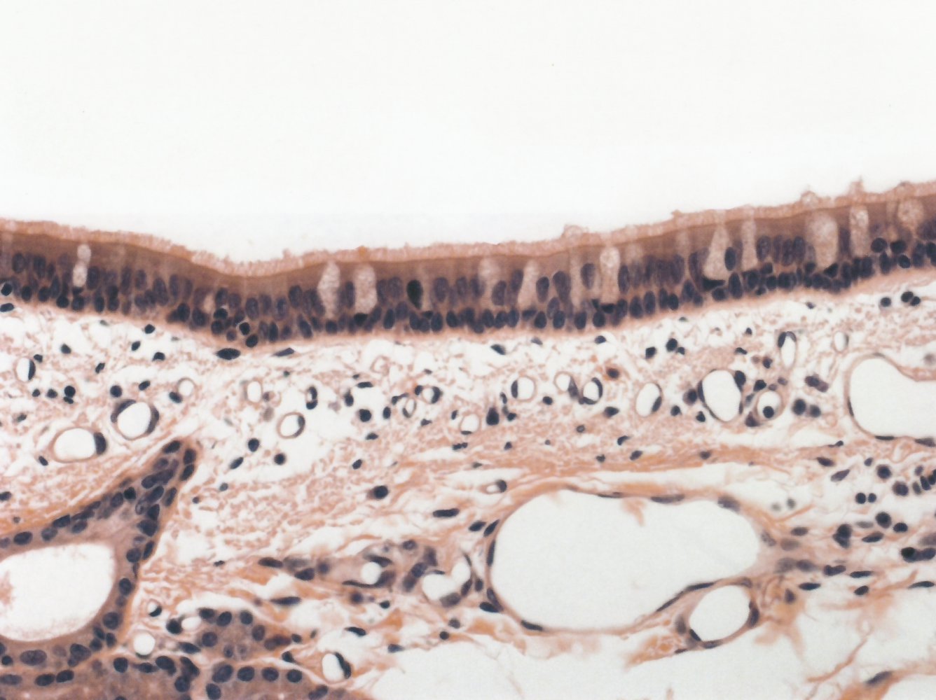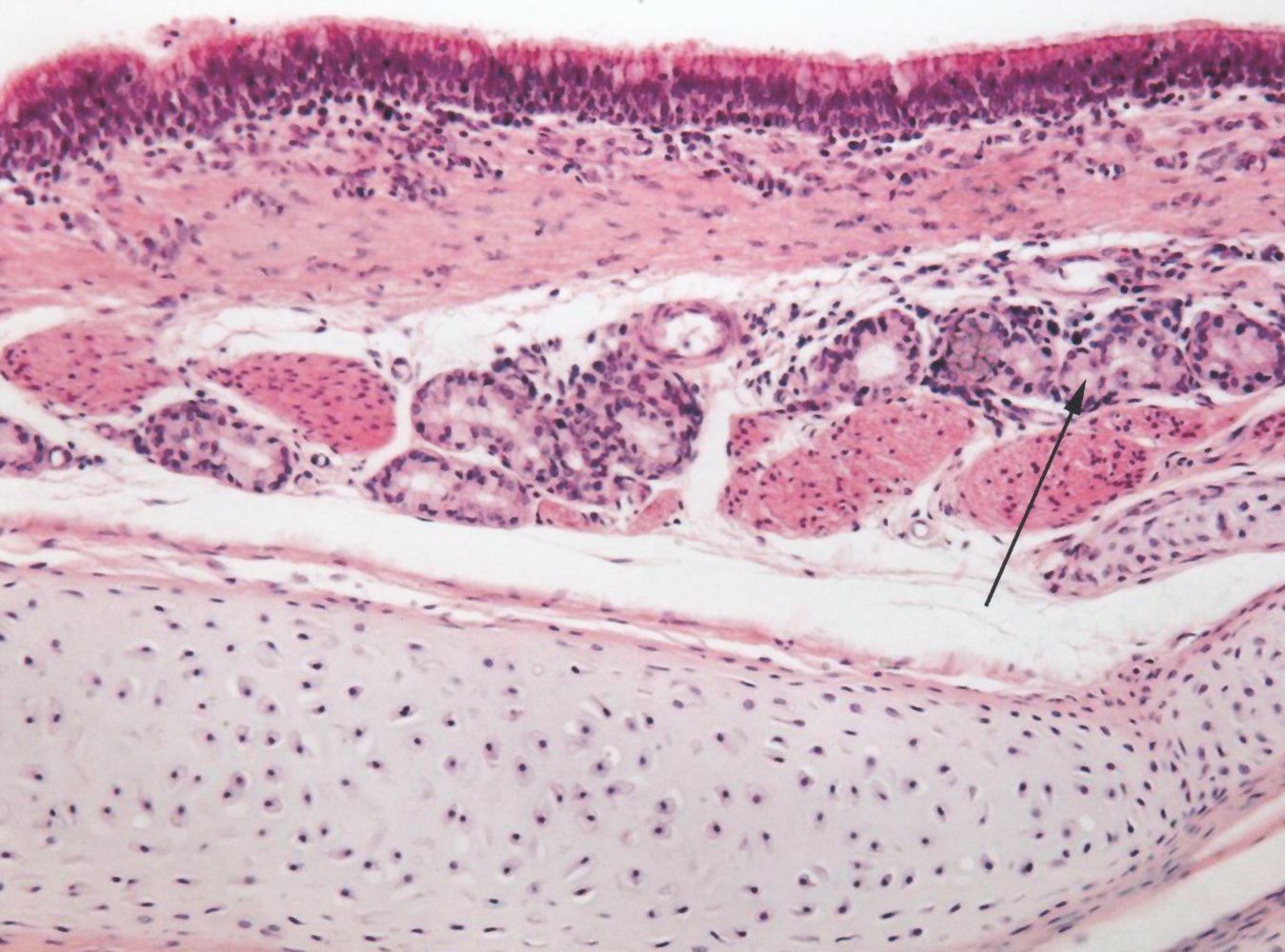 - Pseudostratified ciliated columnar epithelium: important for mucociliary clearance
