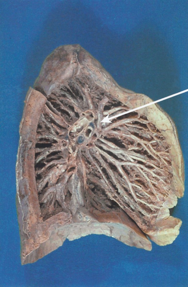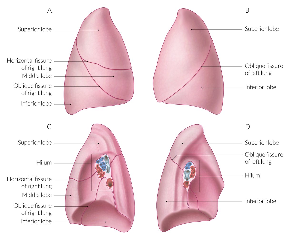 - Hilum of the lung: the point of attachment of the lung to the lung root, which serves as the entry and exit site of the primary bronchi, pulmonary arteries and veins, bronchial arteries and veins, pulmonary nervous plexus, and lymphatics of each lung