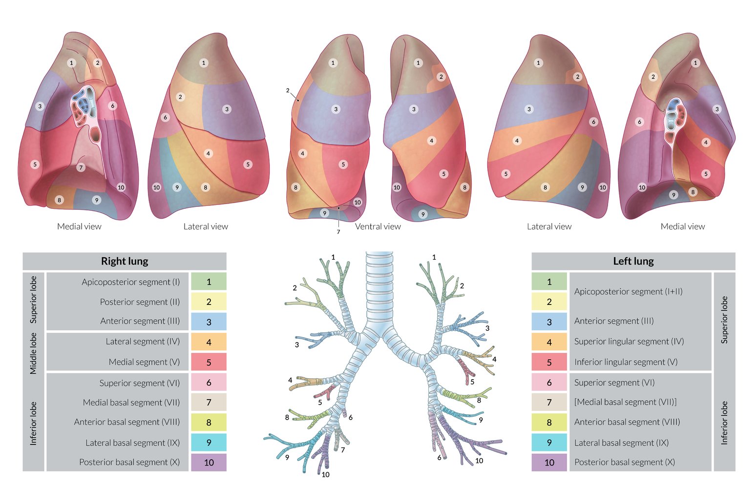 - Segments of lung tissue that are supplied by a segmental bronchus and a segmental branch of the pulmonary artery.