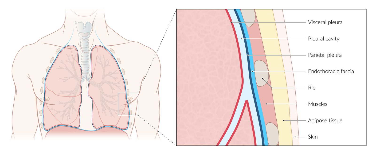 Lungs: located in the thoracic cavity (protected by the rib cage)