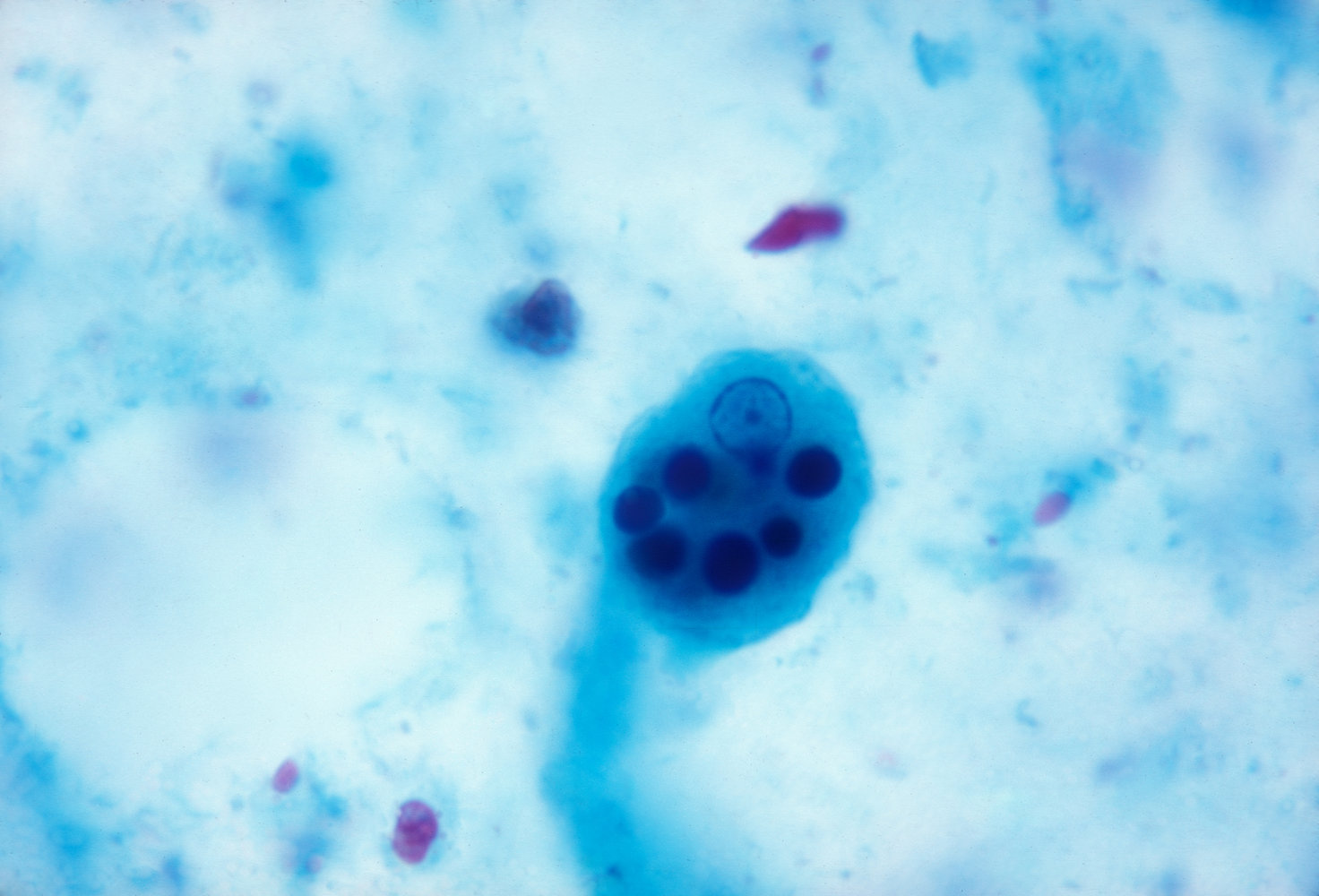 - Microscopy: acellular debris, trophozoites (in < 20% of patients) [7]