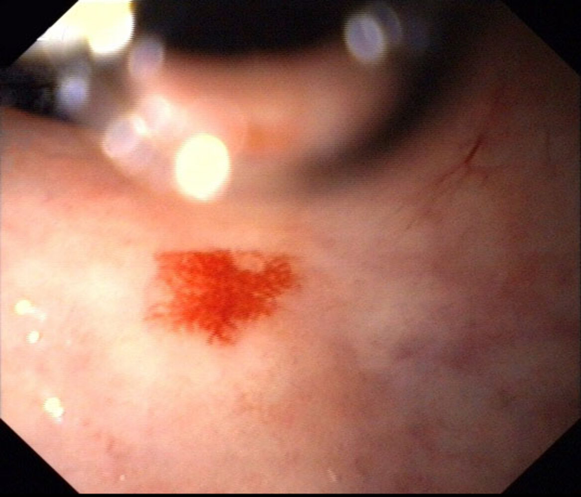 - “Pale halo” sign: a ring of pale mucosa surrounding the angiodysplastic lesion