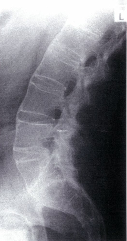 Spinal fractures can occur following minor trauma, e.g., a fall from standing, or even spontaneously.