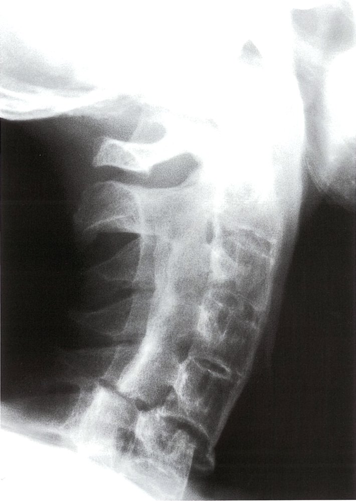 Kyphosis due to loss of anterior vertebral height and wedging of the thoracic vertebrae is present in up to 50% of patients, especially those with advanced AS. The extent of the deformity may be subtle and is assessed using the occiput-to-wall distance.