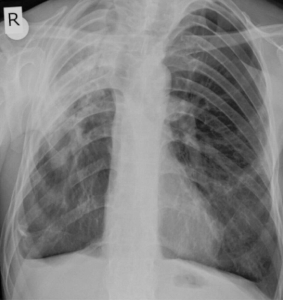 - Lungs: fibrosis of upper lobes (apical fibrosis) [6]