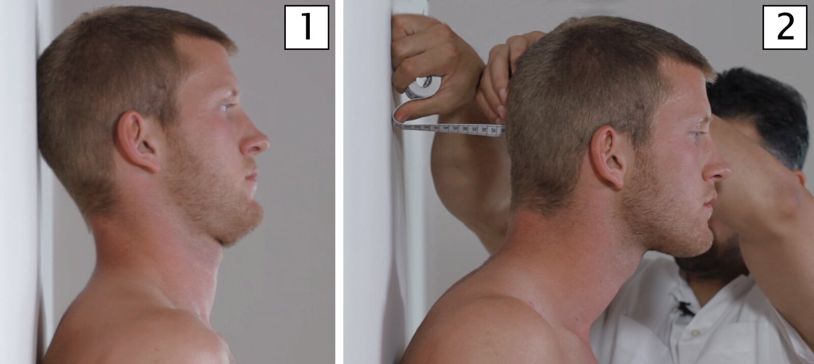 - Ask the patient to stand against a wall with their heels, buttocks, and shoulders pressed against the wall.