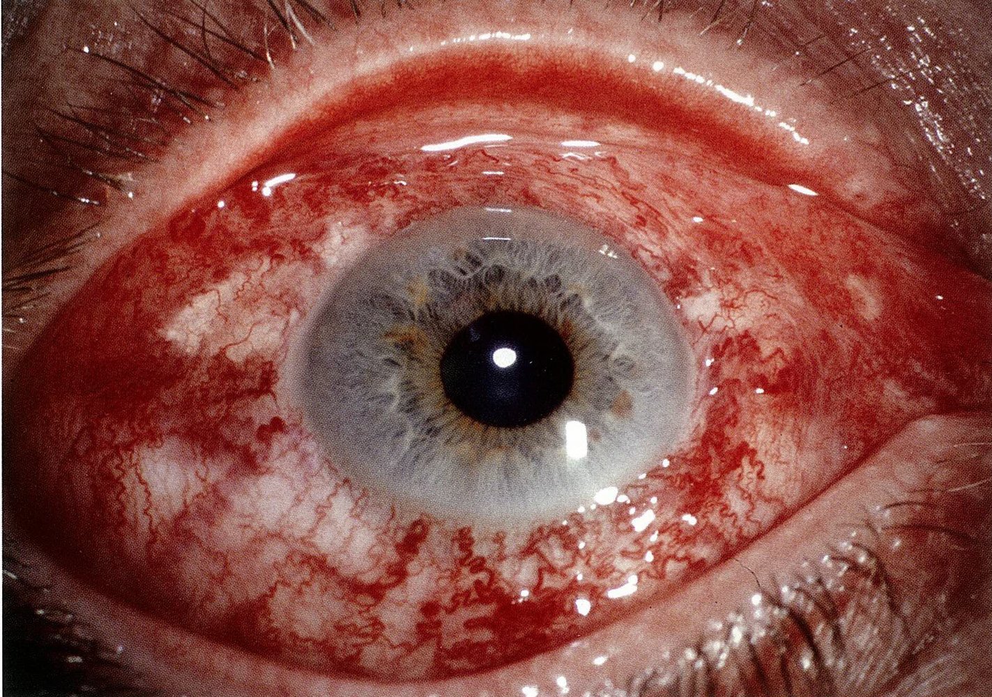 - Massive conjunctival congestion and hemorrhage, with potential bleeding in the retina and vitreous humor