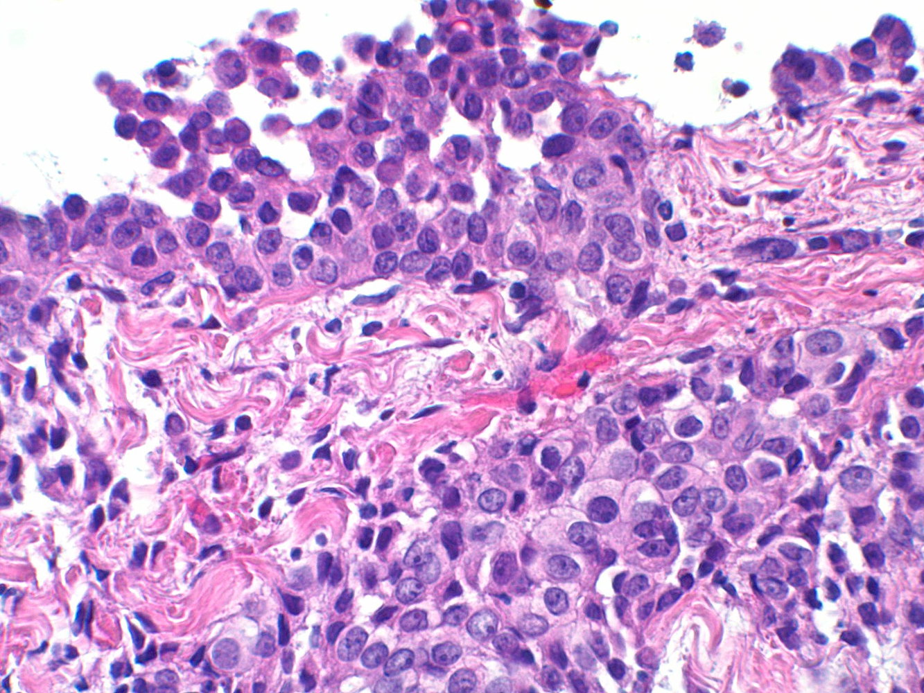 In contrast to mesothelioma cells, the tumor cells of adenocarcinomas have short and stubby microvilli and are usually negative for cytokeratin 5 and 6. [12]
