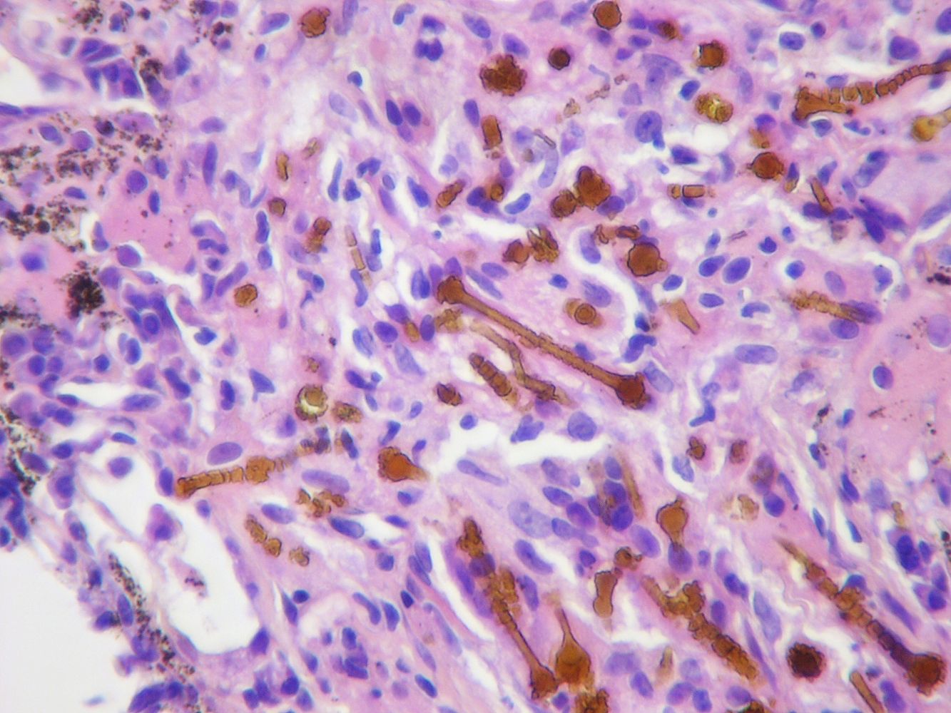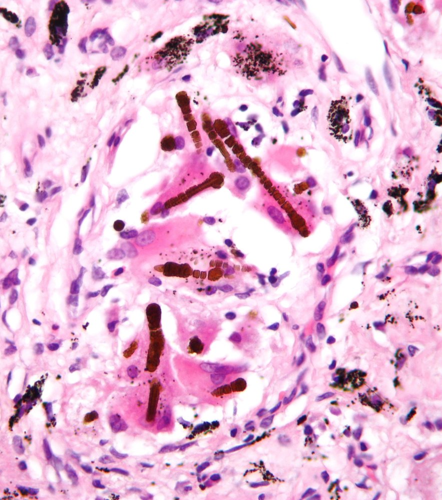Microscopic asbestos bodies (a type of ferruginous body)
