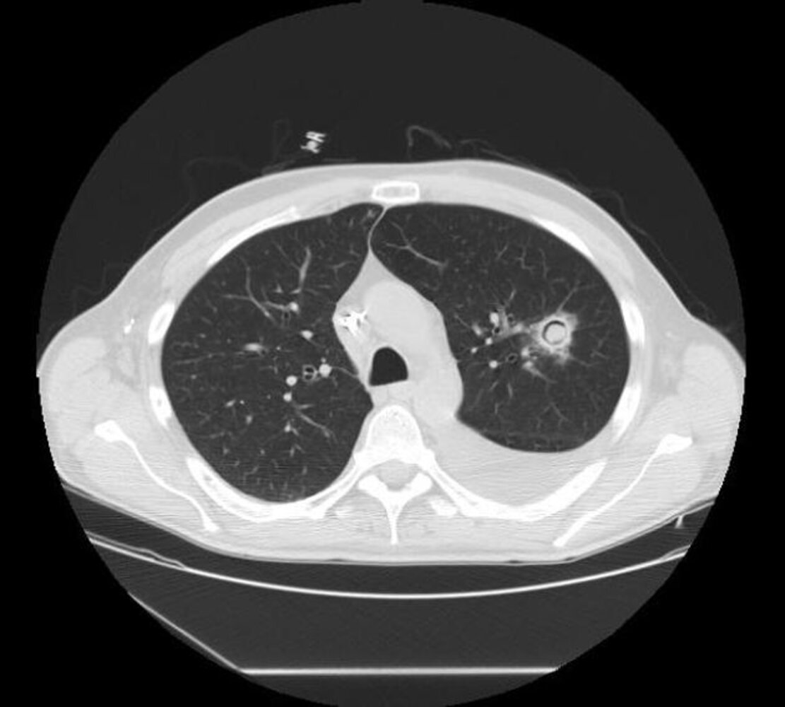 - Chronic fibrosing pulmonary aspergillosis: cavities and extensive fibrosis