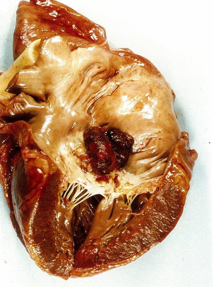 - Symptoms of the underlying disease (e.g., murmurs of mitral stenosis) may be present.