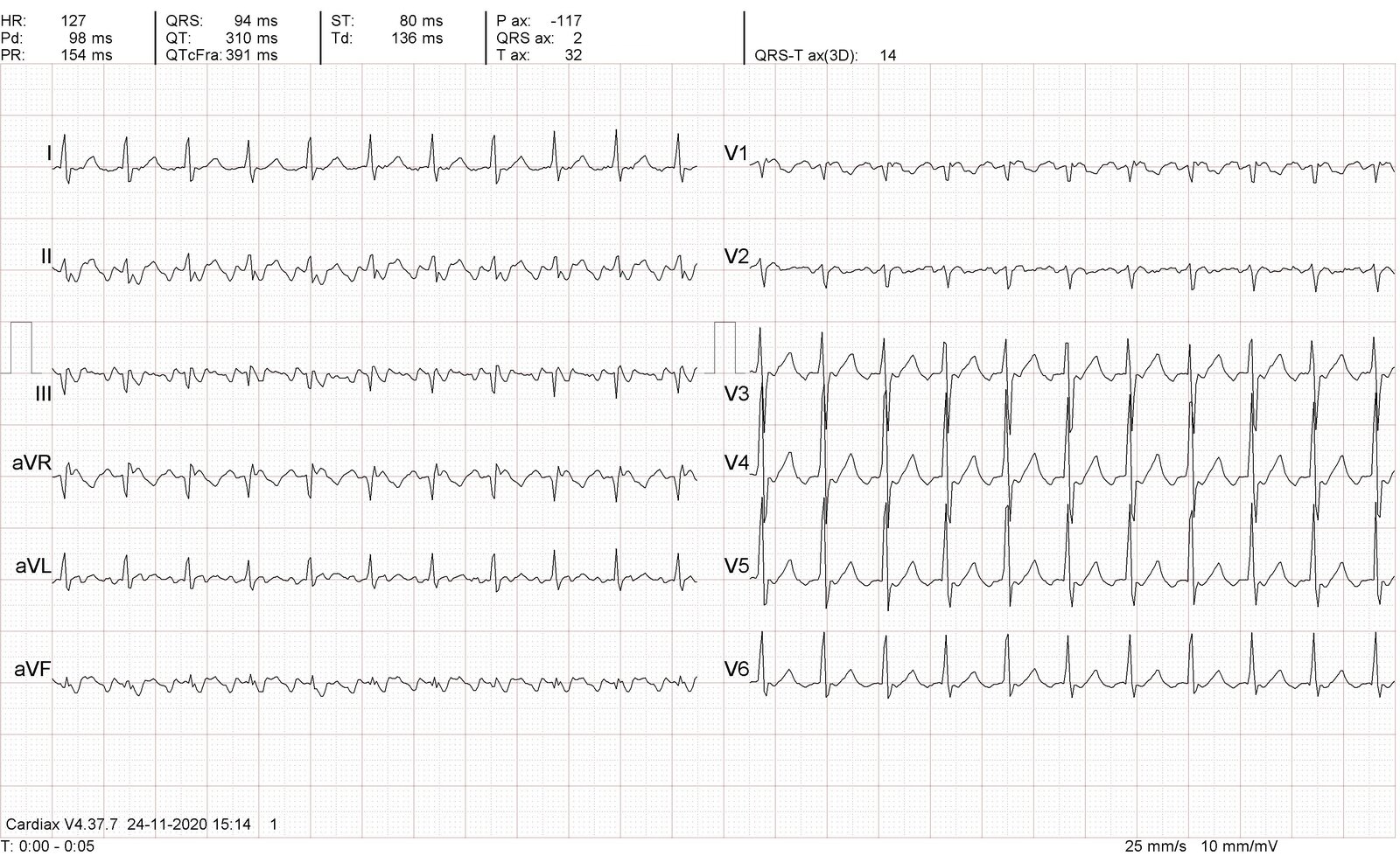 - Pre-excitation of the atria as a result of aberrant pathways (e.g., WPW syndrome)