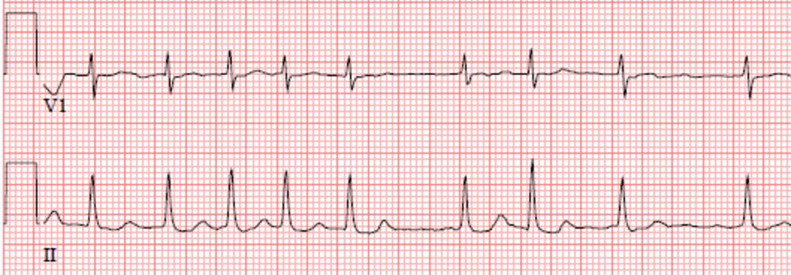 - Regularly irregular rhythm in atrial flutter: variable AV conduction and a consistent variation pattern (e.g., alternating between 2:1 and 3:1)