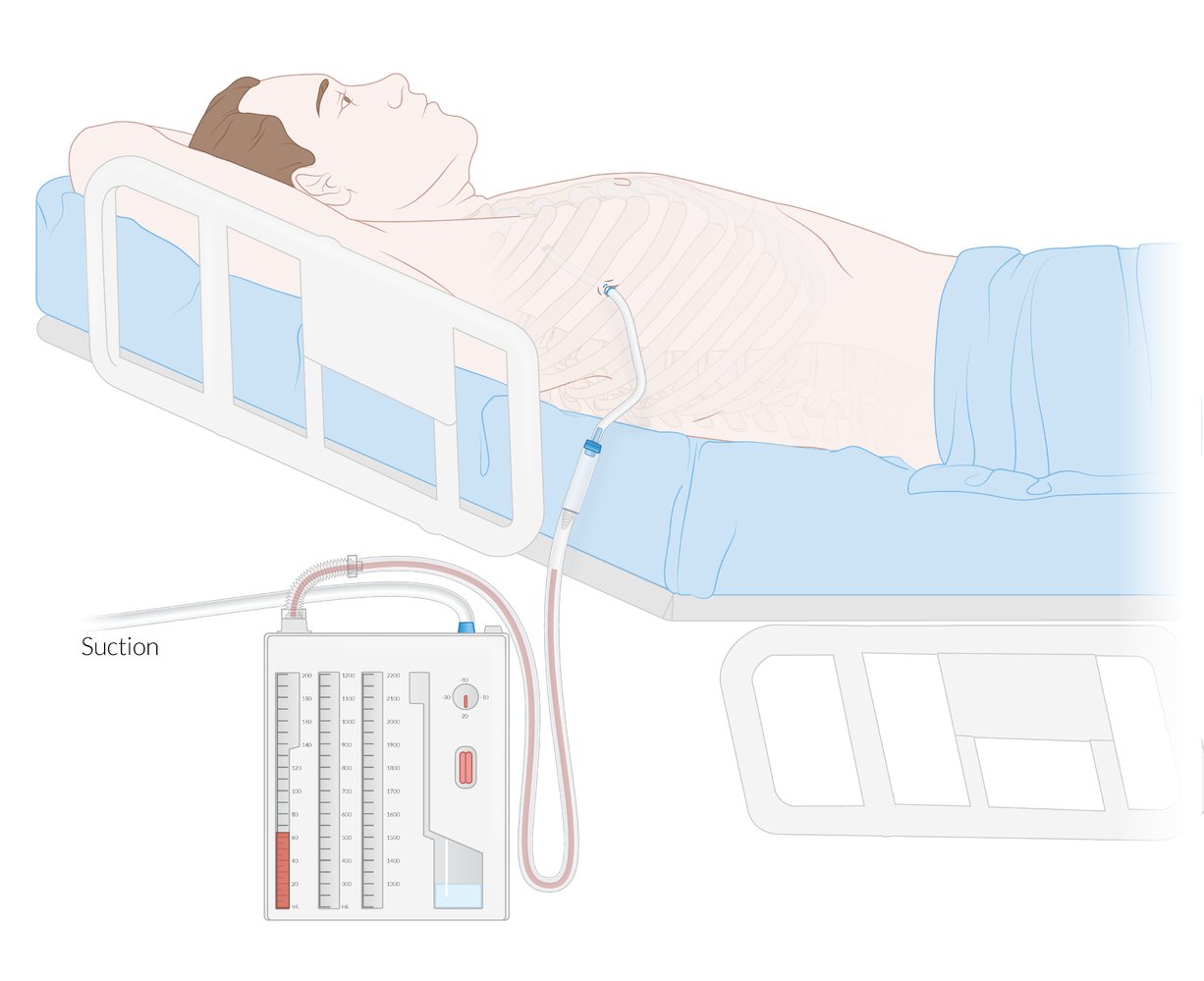 - Connect the tube to the chest drainage system before releasing the clamp. [12]