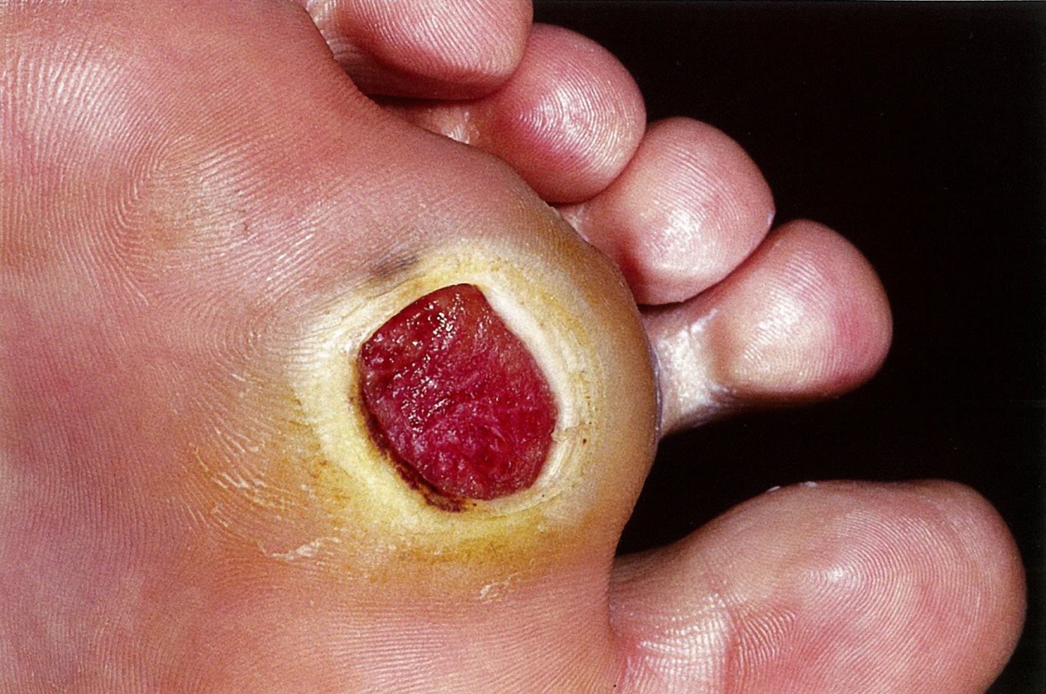 - Ischemic and neuroischemic ulcers often occur on the toes or lateral foot.