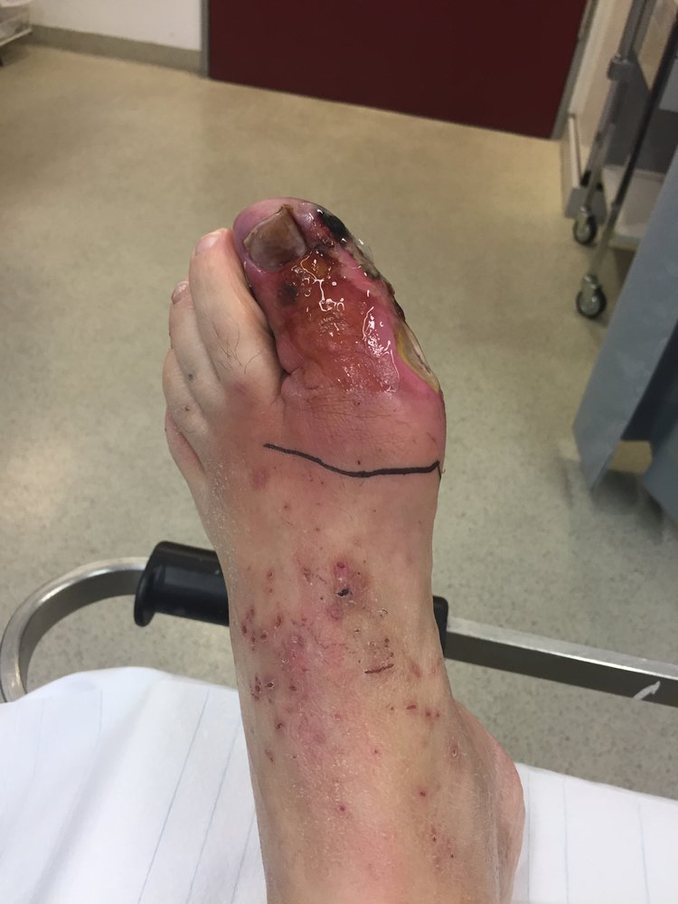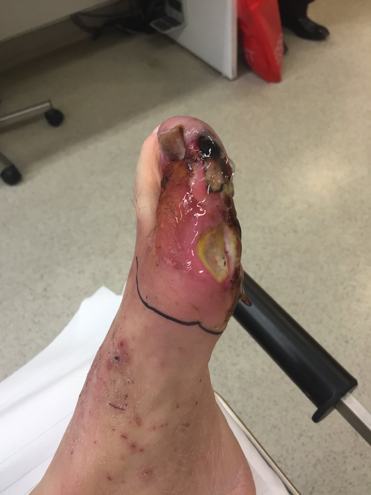 - Start wound care; patients may require surgical debridement or in severe cases, amputation.
