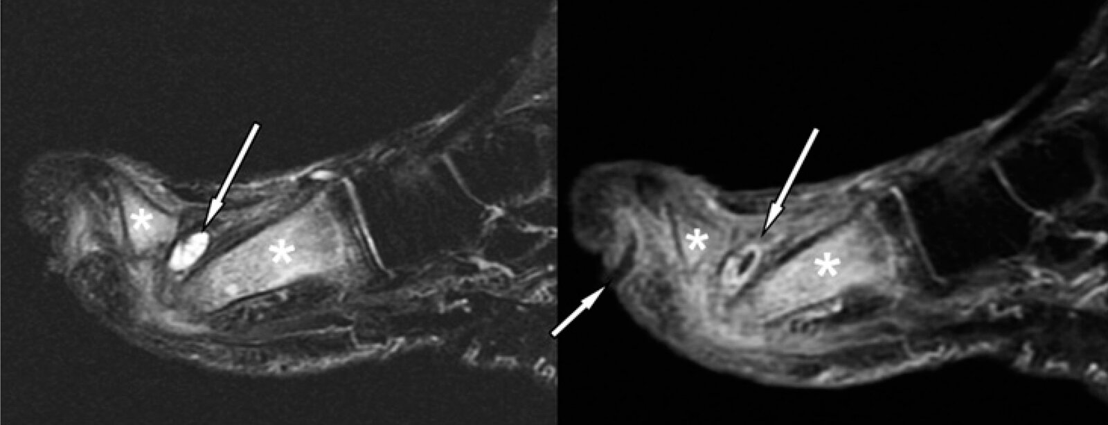Diabetic neuropathic arthropathy can be challenging to distinguish from diabetic foot osteomyelitis; in diagnostic uncertainty, consider bone biopsy. [3]