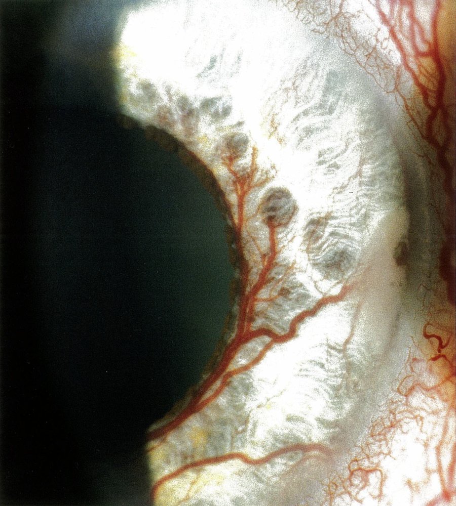 - Progressive neovascular glaucoma: displacement of the chamber angle due to newly formed vessels → secondary angle-closure glaucoma → complications, including decreased visual acuity