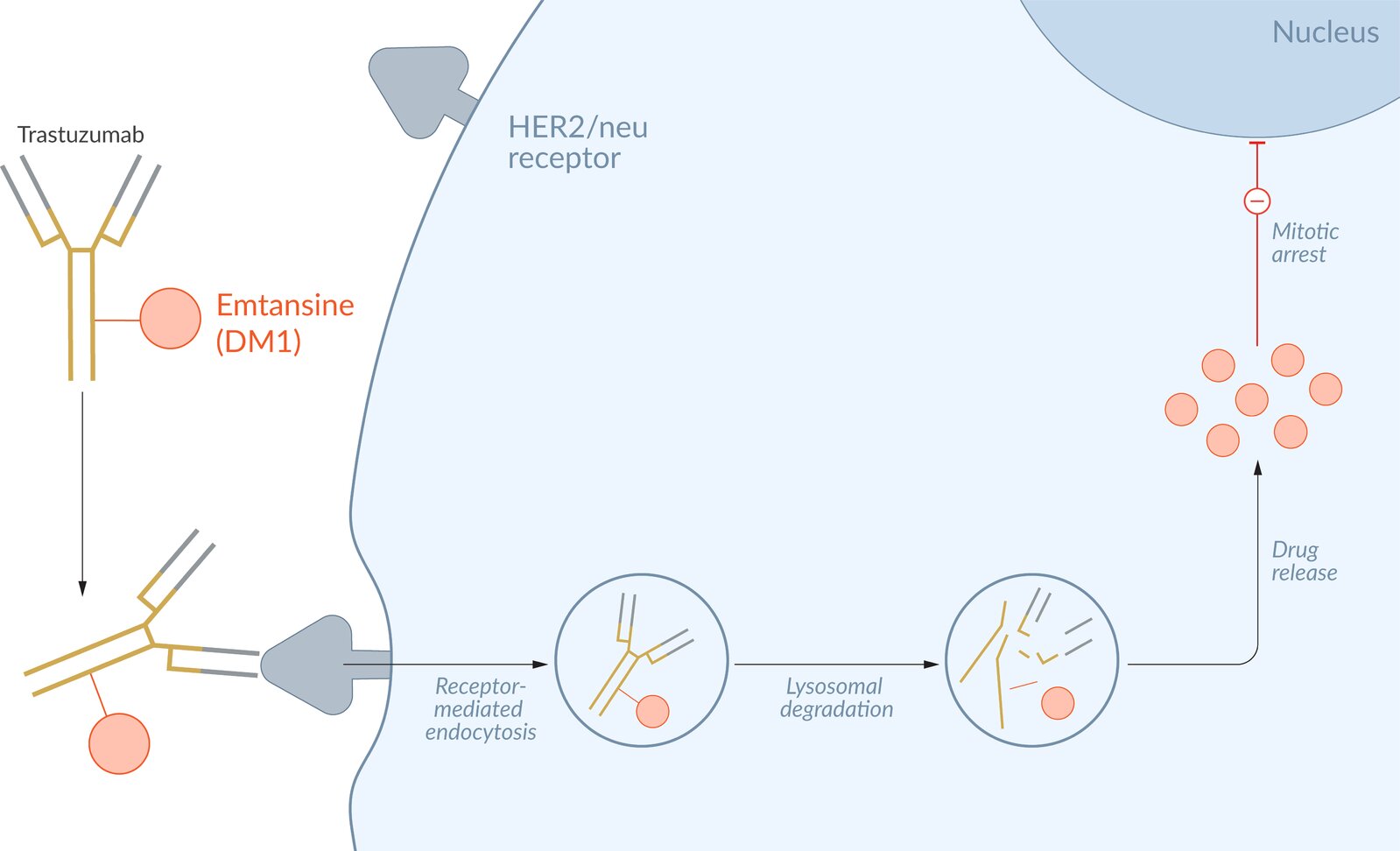 For the most important indication (breast cancer) and the target ERBB2 (HER2) of trastuzumab, think βHer two (HER2) breasts can be treated with trastwozumab.β